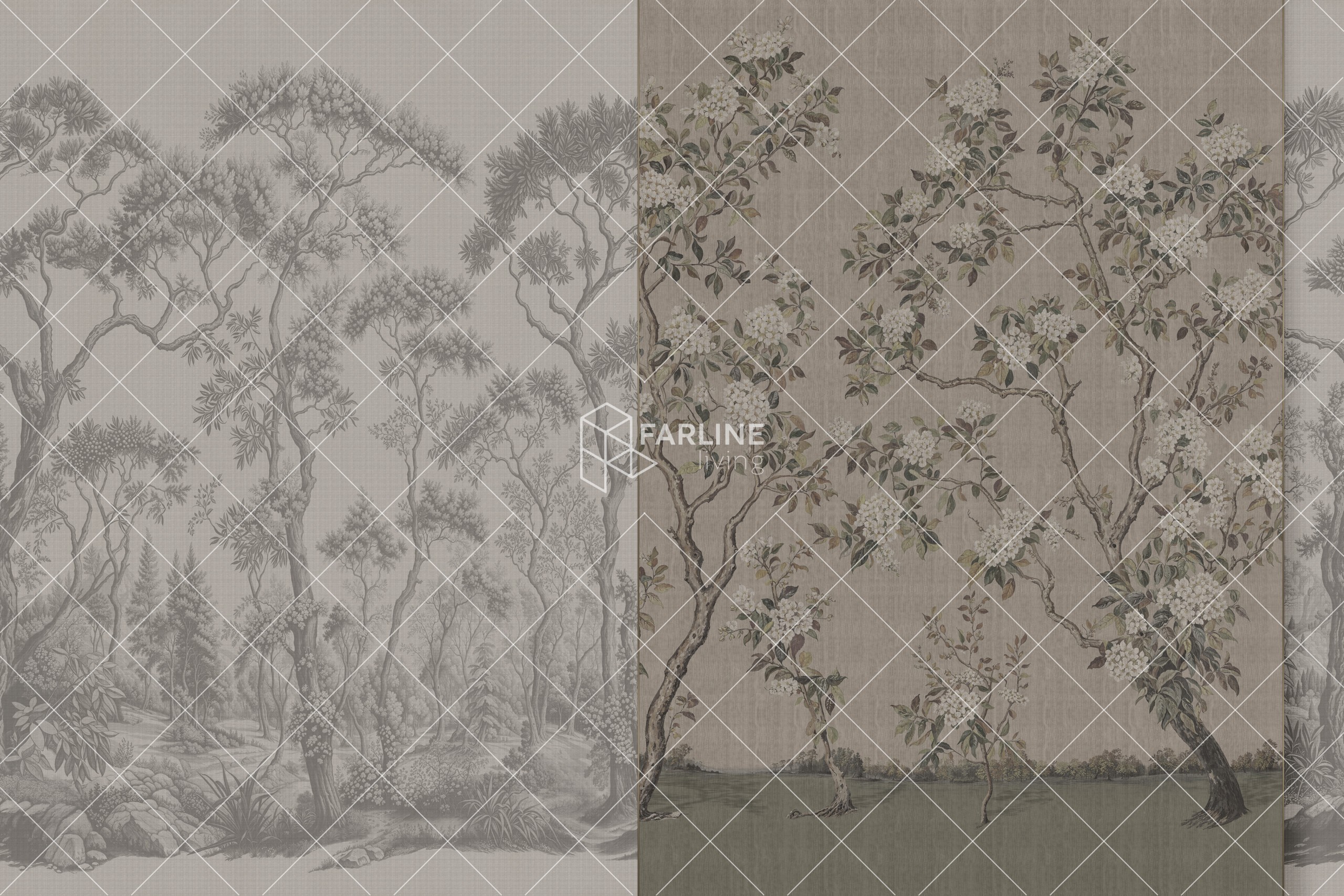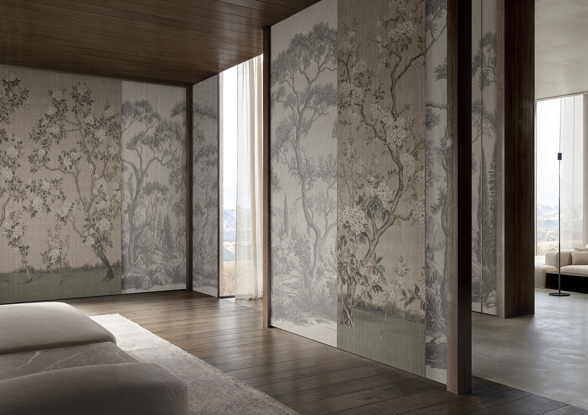 Reliéfní tapeta, která evokuje ruční papír a dodává kresbě hloubku. Tenký matný texturovaný povrch vytváří jemné chromatické efekty.